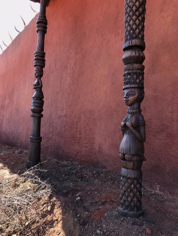 4 x 5m tall female totem poles. Designed in Zbrush, CNC carved out of polyurethane foam, layered with masonry plaster and painted to look like wood.