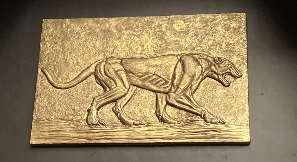 Sculpted from 3d carved polyurethane, hard coated in M1 and painted to look like bronze