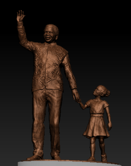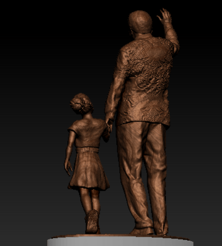 2.8m statue designed in Zbrush, CNC carved out of polyurethane foam, textured with m1 plaster and painted to look like bronze.